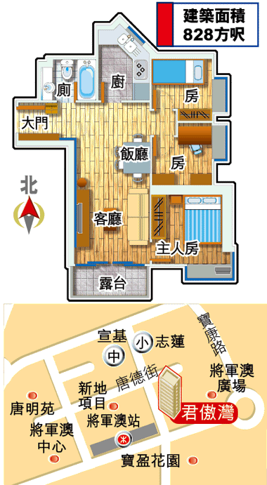 面積/實用:828方呎/76%