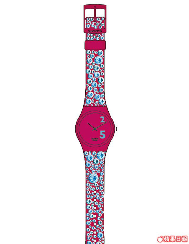 Sa:「好開心可以同Swatch一齊慶祝25歲生日!因為我同Swatch一樣咁大都係25歲,佢真係陪住我成長。我設計隻錶叫《FillInTheBlanks》,黑色部份代表空洞的Life,而顏色部份則代表Joy同生命充滿色彩意義,每人都應該為自己嘅生活添上色彩。