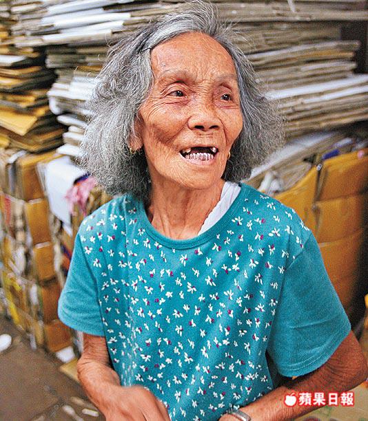 黃婆婆幾十年來家住北河街,雖然兒孫滿堂,可是他們「搵食艱難」,孫女每月給她200元,她已覺心滿意足。不過,由於百物騰貴,就算她早前在街上被車撞傷右腿,出院後仍得繼續到街上拾廢紙,加上微薄的綜援金捱着苦日子。她帶點怨氣地說:「食碗盅頭飯都要10蚊啦!」