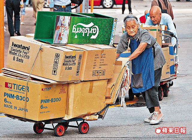 「隻腳被車撞過,裝咗不銹鋼,行動唔方便都要執紙皮。賣唔到錢,咪唔食飯,食麵包囉。有乜辦法呀!」84歲瘦骨嶙峋的黃婆婆,有氣無力地推着15公斤廢紙,向深水埗一間相熟的回收店售賣。可是今日她遲來一步,廢紙回收價半小時前,由每公斤7毫減至5毫,她只能接過辛苦換來的7.5元。