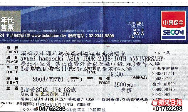 日本女歌手濱崎步將於今、明兩日在台北小巨蛋開騷,昨日中午她飛抵台灣,吸引300位歌迷接機。步姐原定於前日抵台,但因感冒而押後一日到達。 抱恙在身的步姐穿上樽領毛衣及短裙,在多名保安護駕下步出機場,現場過百歌迷一擁而上,場面混亂,但步姐仍面帶微笑向fans打招呼及握手,看來心情不俗。 另外,步姐的兩場台灣個唱早前被踢爆黃牛票滯銷,台灣警方昨日在網上發現有假門票出售,並拘捕了涉案男子。 採訪、攝影:黎寶蘋