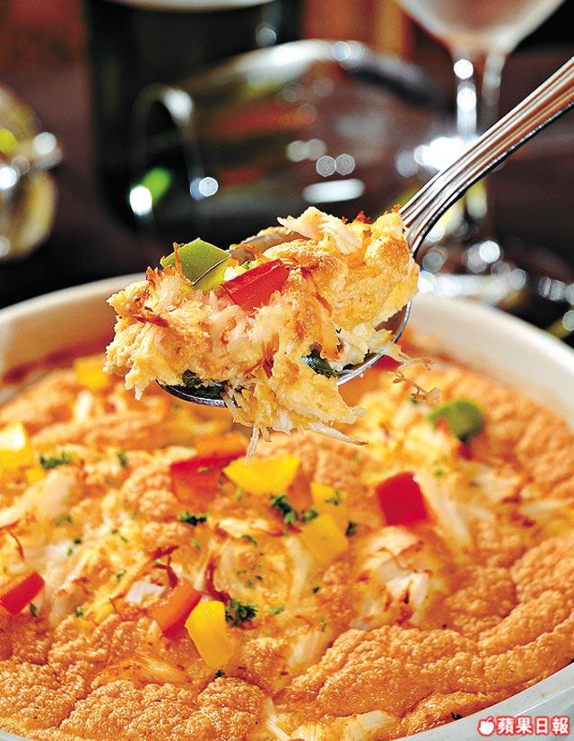 除正宗法菜還有獨創Fusion菜:師傅將梳乎厘加蟹肉做成鹹點變開胃前菜。
