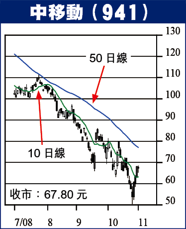 港股的9天RSI自8月至今,每次反彈逼近50水平時,便不能進一步上衝,而大市亦隨之下調,剛巧上周五恒指的9天RSI亦在升達50水平,便已開始腳軟。中移動(941)也有類似情況,上周中移動的RSI也再次升破50水平,且看這次能否穩守50水平之上。最後,筆者雖然對近日大市反彈有戒心,但若再度逼近12000點,甚至11000水平,應是長線入市良機。