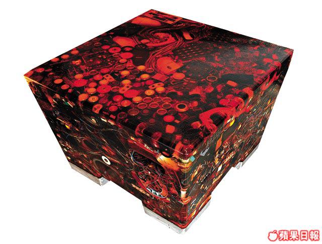 作為藝術擺設的N+EW椅子,將電腦零件循環再用,並以樹脂及鋁製作。(60×60×40cm)$25,999