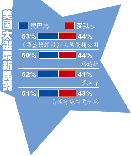 但今屆30多個州開放提前投票,《華盛頓郵報》和美國廣播公司(ABC)上周五公佈民調發現,全美已有24%選民投了票,當中59%聲稱投給奧巴馬,僅40%投給麥凱恩。按比例推斷,麥凱恩奇迹很難出現。