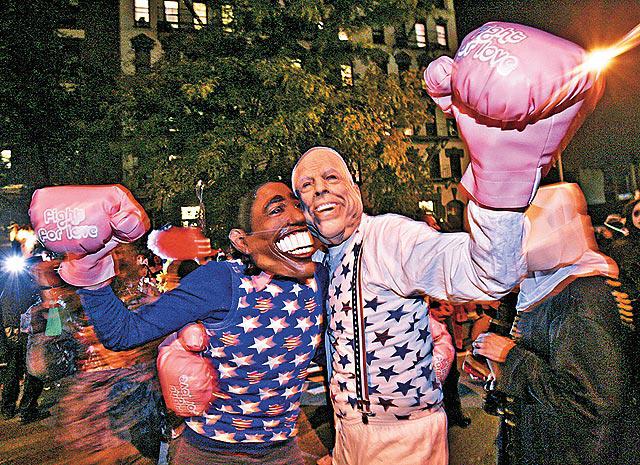當日下午,架上太陽眼鏡、一身便服的奧巴馬,拖着扮成動畫人物「怪誕屍新娘」(CorpseBride)的細女薩莎出門,準備步行到競選陣營司庫內斯比特(MartyNebsbitt)的寓所,參加萬聖節派對,但是記者偏偏不通氣,一路追訪他兩父女。