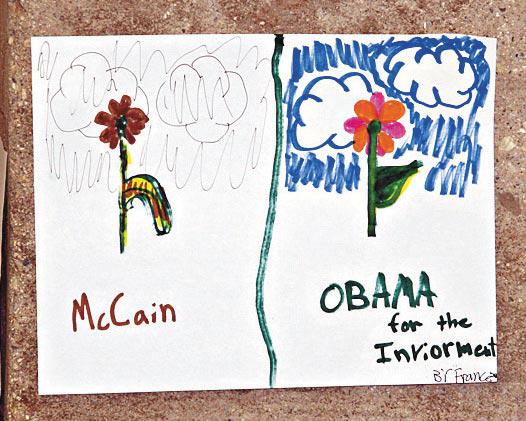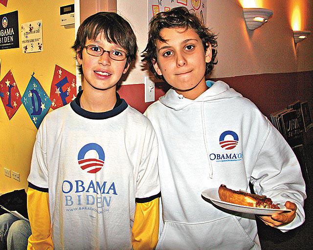 11歲的Zach跟同學Sam在競選總部已經是熟手義工,因為未夠16歲不能打電話拉票,但接待訪客、傳遞物資和畫標語都是他們的強項,Zach還以大人的口脗向記者分析奧巴馬的經濟政綱如何比麥凱恩優勝。
