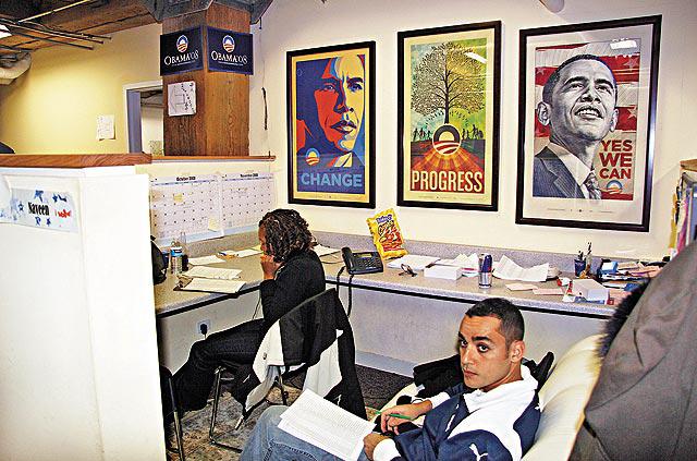 決戰前夕,芝加哥的競選總部人頭湧湧,都是義務來幫手拉票的市民。他們向工作人員拿一份選民名單,隨便找個位置坐下,沒座位的就索性席地而坐,然後用自己的手機打電話給名單上的選民催票。23歲的Tiffany第一次打電話拉票,「我其實有點害羞,但為支持奧巴馬,除了自己投票,我覺得應該參與做點事。」她認為,很多政客都標榜了解人民所需,但其實高高在上;奧巴馬以前在芝加哥做社區工作,落手落腳接觸居民,真正明白民間疾苦。