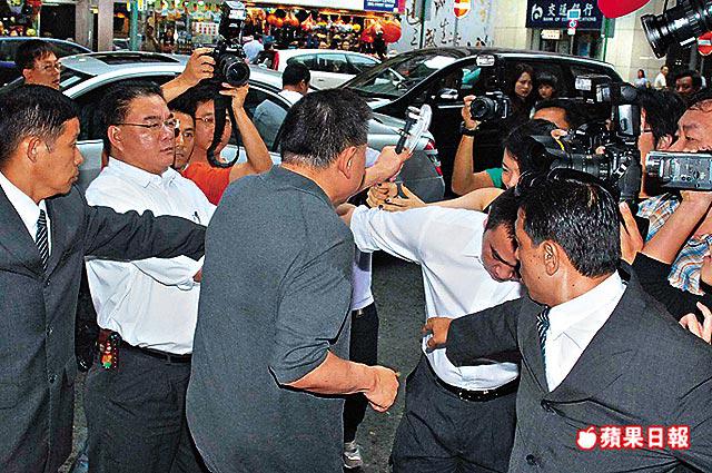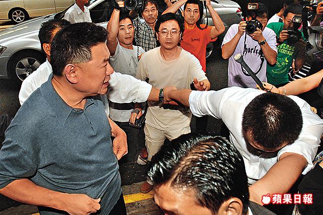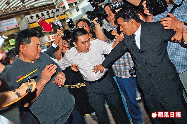 大批記者繼續追問大劉何時擺滿月酒之際,大劉保鑣即場擋駕,雙方推撞之間有線電視一名女記者的咪高峯不慎扑正大劉左邊面頰,氣得大劉大發雷霆,一邊捉住她所持咪高峯猛力地搖,一邊咆哮:「你知唔知你扑親我塊面?」之後大劉又指住左邊面頰大罵:「你睇唔到你扑親我面呀?黐線㗎你!」然後抽了抽褲頭,氣冲冲的走進福臨門。