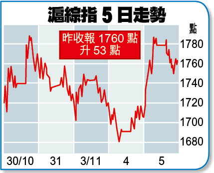 滬綜指昨高開0.6%後持續向好,最多升4.8%,高見1788點,收報1760點,升53點或3.2%;深綜指最多升4%,見475點,收報470點,升13點或3%。兩地成交合共514億元。國務院副總理李克強昨強調擴大內需改善民生,特別提到居民住房及醫療問題,則刺激內房股及醫藥股應聲急彈。
