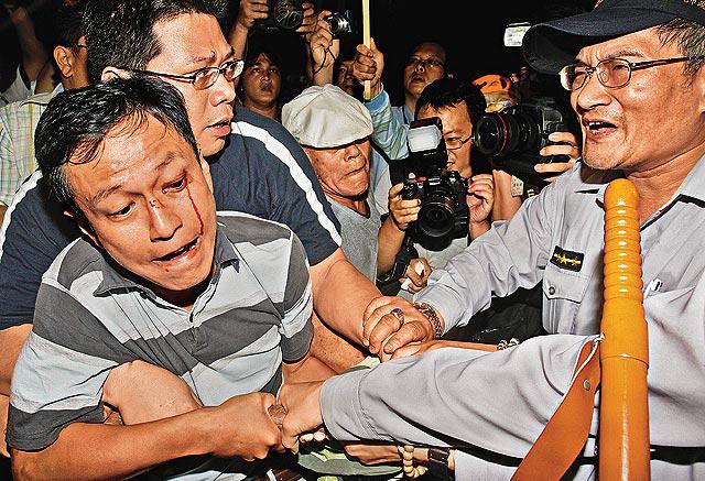 大陸海協會會長陳雲林與台灣馬英九總統今日會面前,陳雲林昨晚出席國民黨主席吳伯雄在台北晶華酒店為他而設的晚宴,其間遭綠營示威者衝擊並包圍酒店,直至今日約凌晨一時,陳雲林仍在酒店內,當時他已待在宴會廳超過六小時,有消息指他會在酒店留宿。 酒店外的防暴警察稍後採取清場行動,示威者不斷向手持盾牌的防暴警察投擲雜物,有示威者被強行拖走。