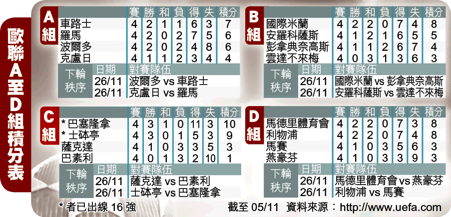 「冷風吹,心裏空虛……」唉!周二歐聯捧強隊全部搣飛,畢傑同大家齊齊哭波喪。英超「1哥」車路士作客慘負頹勢的羅馬1:3;利物浦主場於補時階段才由謝拉特的12碼迫和馬德里體育會1:1。還有國際米蘭、巴塞隆拿及雲達不來梅爆冷和波輸波,冷得令人空虛……畢傑
