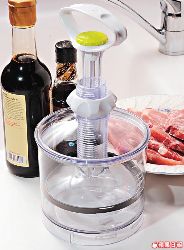 先將肉塊放入ONETOUCH真空醃肉器後放進調味料,再按掣,20分鐘後便完成。$120/d