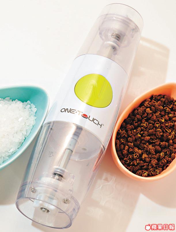 上方放胡椒,下方擺粗鹽,一觸式磨碎器,即刻有幼細調味料。