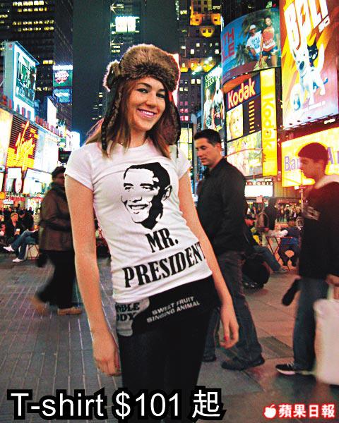 新美國總統出來了,街邊賣夜間觀光巴士票的老外用Obama撩人傾偈開始Sell飛,但我走遍整個TimeSquare,只找到三家有Obama紀念品賣。ObamaT恤6號才推出,7號一天賣出百來件,都是旅客買,不過五百多個「American'sFirstFamily─Obama08」襟章就一日賣光!