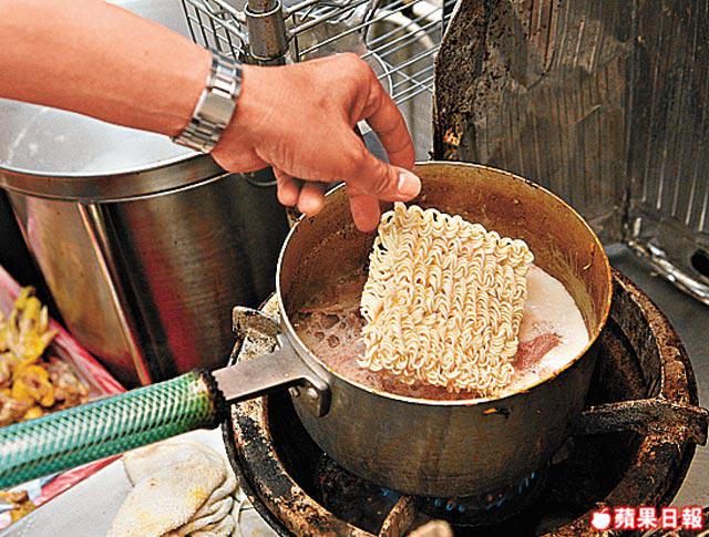 2.大火煲滾水,把公仔麵放入水中煮熟。