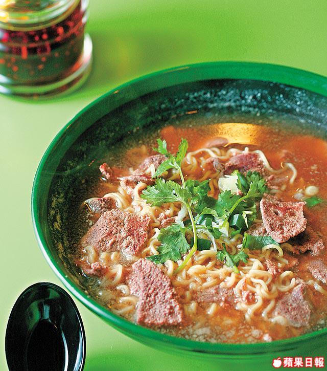 3.轉中火,把醃好的豬膶放入麵中淥一淥即可上碗。