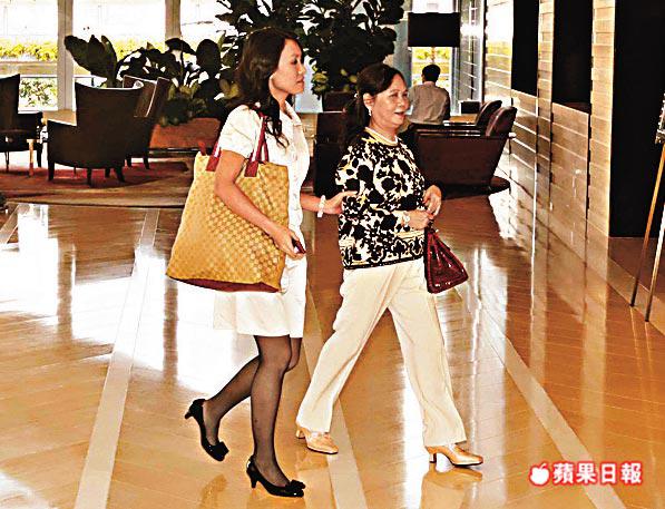 呂麗君落車時笑意盈盈,一身黑裙斯文look的她,手拿價值30萬元的Herm囗s鱷魚皮Birkin袋。身光頸靚的呂母同樣笑容滿面,無獨有偶,她也是用與呂麗君同款的手袋。她們逗留了兩小時後各自離開,呂麗君返回劉宅,其「C00L」車牌的座駕則殿後尾隨。