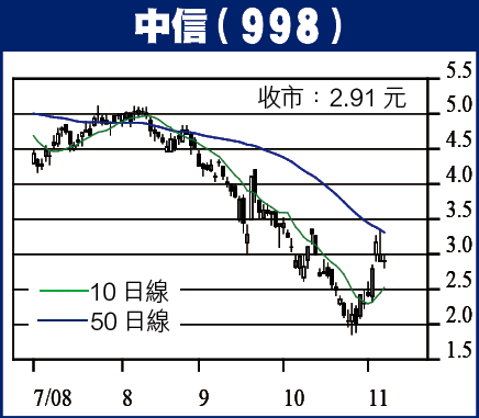 中型銀行勝在增長迅速,中信銀行雖然在存貸比例上較為進取,但估值優勢彌補了這方面的不足,不過,此股在先前反彈時表現出眾,所以上周五大市由低位反彈,資金炒落後,股價反而處於弱勢,短期內應以弱勢居多,但投資者反而可以趁此機會,吼低買以作長線儲貨。