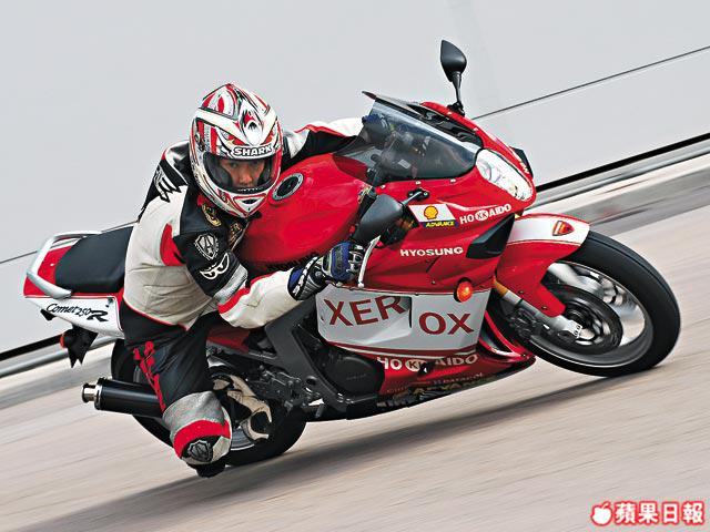 的確,「睇得」一向係HYOSUNGGT250R嘅賣點。霸道嘅外形,喺鬧市中肯定搶盡收視,靠嚇,佢攞滿分!有姿勢有實際嘅大馬力巡航多的是,只不過若非老手,則未必有本事操控。又或者應該話,經驗豐富先會追求高層次操控性能,反而外表兇猛,但又如街車般易於操控,讓新手都有本事發揮技術嘅四衝250細車,啱晒路數。喺動力方面,廠方並無確切嘅公佈,不過據講新版馬力有所提升,極速可以由以前的170km/hr提升至180km/hr,講真,喺香港已經好夠用。另外,08版已經轉用嘅電子燃油噴注系統,符合歐盟3型嘅排廢標準,令HYOSUNGGT250R保持慳油本色。事實上,250四衝跑車在市面上已經買少見少,HYOSUNGGT250R僅餘嘅日本對手喺售價上始終有點距離,如果唔迷信品牌,外形殺晒,各方面性能都表現平均嘅HYOSUNGGT250R,無疑有相當吸引力。
