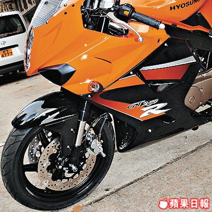 舊款HYOSUNGGT250R登陸香港已有一段日子,點解咁High又要表演多次?梗係!因為09新版嘅首批車已經新鮮熱辣運抵香港!睇住佢落貨拆箱,即時揀部橙配黑靚車影靚相先!新款無論顏色同拉花嘅配搭都不俗,霸氣醒目,睇真有乜新搞作先:一睇車頭,賣相無乜變,不過似乎惡咗,原來係嗰兩條本嚟已經夠氣勢嘅41mm倒立前叉由金變成黑色,配合車身顏色,更加有殺氣。另外,轉數錶由黑變白,似乎更加清楚醒目,而旁邊電子顯示屏嘅上方,則多加了一排顯示,喺行車資料顯示方面,的確有進步。小改後完全保留既有賣點,全車Fairing流線有型,歐陸Feel上下頭燈,雙頭碟煞車加埋新版沉黑倒立前叉,跑味濃烈。車身唔算高,坐姿相對舒適。