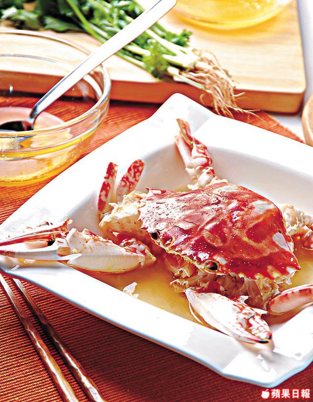 蒸好蟹後,將蟹汁倒出再淋上蟹身,可令色澤更靚。
