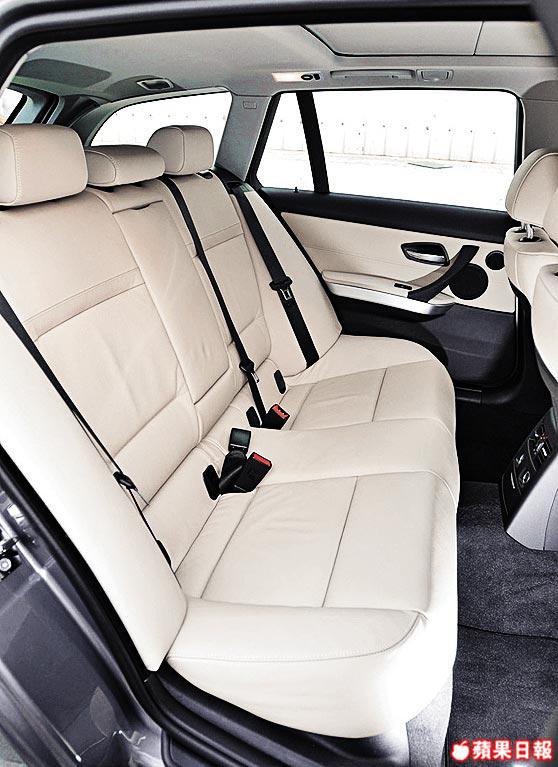 貴為3系頂級版本,335iTouring跟稍後登場嘅Saden四門房車版,從車前望去,兩者近乎一模一樣,不過向上望番個頂架,一眼就分到兩者不同之處。喺性能上亦無甚分別,不過Touring多咗個揭背尾廂用途,論實用性比四門房車版Saden更靈活,加上後排座椅可平坦地摺低,跟尾廂完全接合,令載物量大大提升,周末小家庭出外郊遊暢玩,帶多多食物同玩具都無問題。