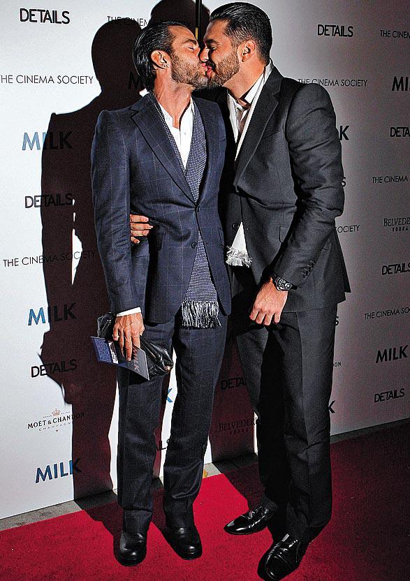 昨日的首映除了有辛潘、占士法蘭高(JamesFranco)、佐斯布連(JoshBrolin)及艾美夏斯(EmileHirsch)等一班演員出席外,也吸引到多位同志名人到場支持,包括有「同志情人」之稱的男歌手RufusWainwright、著名時裝設計師華倫天奴(ValentinoGaravani),而名牌LV設計師兼藝術總監MarcJacobs,更與巴西籍老公LorenzoMartone在紅地毯上狂咀晒恩愛,認真切合電影的主題。