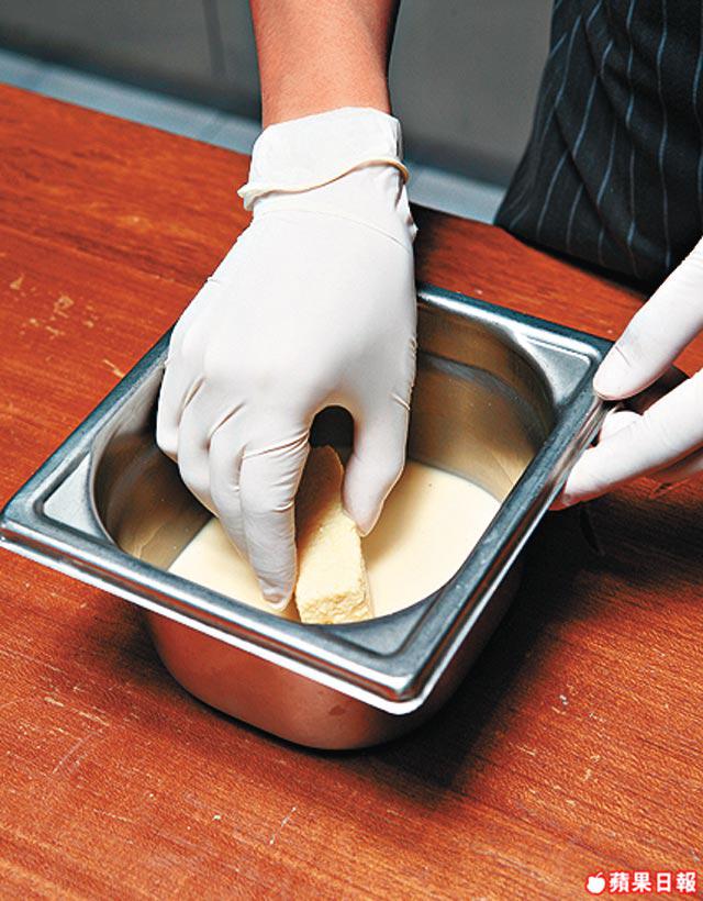 多士蘸蛋漿不可過濕,否則煎好後內裏會太軟爛。