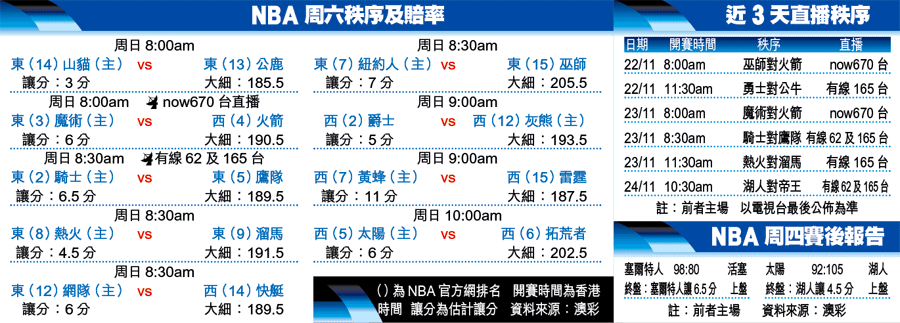 話雖如此,落場面對中國中鋒姚明,懷特侯活應該不會「禮讓」。事關這位中鋒今季大勇大熟,每場平均取得21分及13.5個籃板,早前對雷霆一仗,更創下30分、19個籃板及10個封阻的恐怖「3雙」紀錄。
