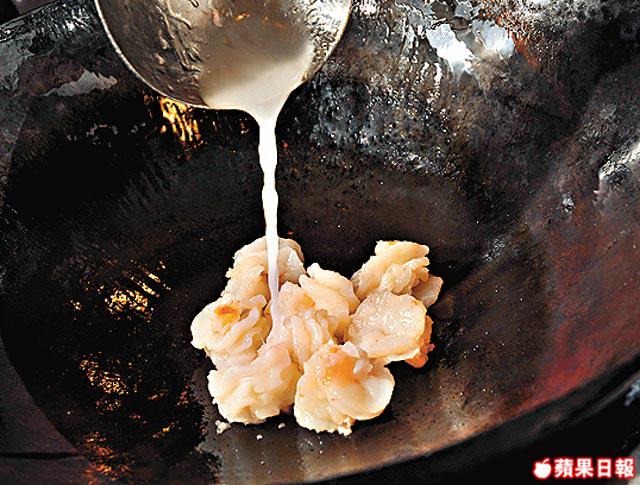 埋法:煮好食材後,加入芡料快手炒勻,將芡汁緊緊掛上,沒有多餘汁芡留碟上。