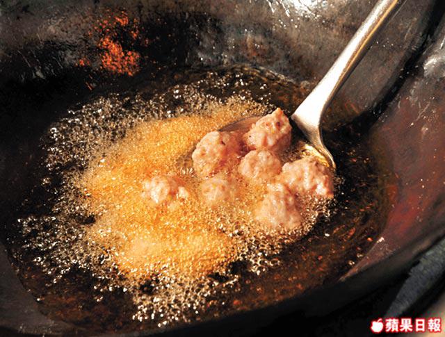丸子炸至金黃色後要轉大火,將丸子內的油份逼出,食落更香口。