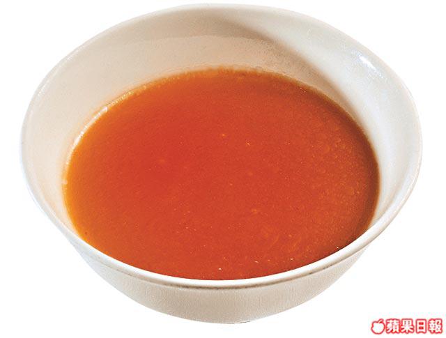 材料:雞湯1/2杯、山楂6粒、茄汁1湯匙、鹽少許、糖2茶匙、生粉水適量