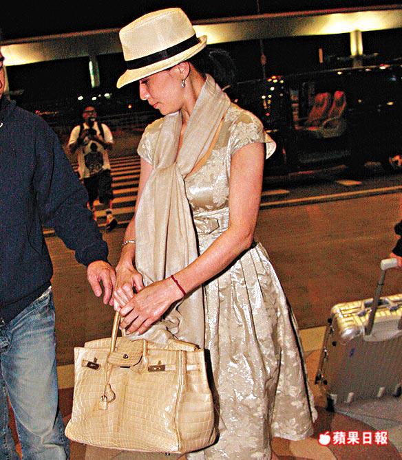 Birkin是袋王,上天下海也沒有人阻擋你,但是上飛機出埠旅行,有人力求輕便,有人卻需要一個載物量大的袋,嘉玲明顯是後者,她出發往不丹結婚時,花花裙襯crocoBirkin,富貴逍遙,也與JaneBirkin想擁有載物量大手袋的原意極配合。