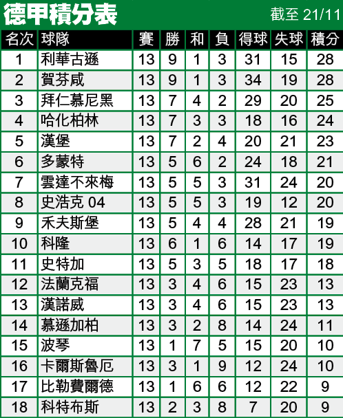 「讓球主客和」拜仁「主勝」穩開,但如嫌得1.47倍冇肉食,可敲他們贏3:1或4:2。文:吾中