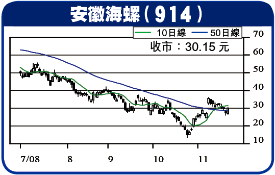 截至今年9月底止首三季業績,純利升34.3%至20.18億元,業績續有穩步增長,惟市場憂慮內地經濟放緩將令水泥需求減少,加上環球股市急挫,拖累海螺股價由高位大幅回落。然而隨着內地將加大力度投資基建項目,其業務前景料有明顯改善,現水平估值有一定吸引力,建議28元買入,中線目標36元,跌穿24元止蝕。