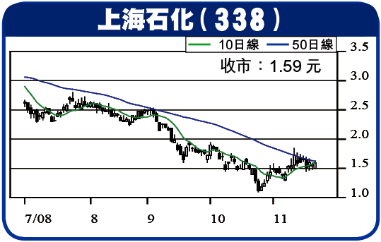 內地成品油定價機制預期短期內出台,雖然會即時令成品油價下調,但從事下游石油業務的上海石化仍然會受惠,尤其是油價已由高位大幅回落,入口原油加工成本明顯降低,令煉油業務虧損能夠逆轉。股價已企在10及20日線之上,若向上升穿50日線,確認上破阻力,可於1.55元買入,上望1.80元,穿1.48元沽出。