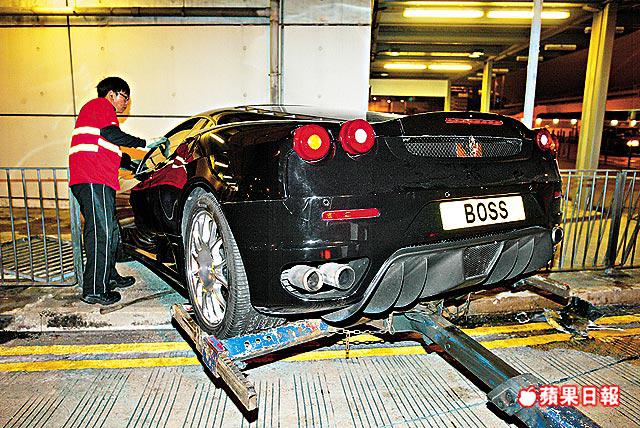 發生意外法拉利F430F1跑車,掛上自訂車牌「B0SS」,該車牌於上月初以32萬元成交,成為當日成交價最貴的「車牌之王」,買家身份神秘。根據運輸署資料顯示,「B0SS」的車主登記是一間公司,去年以320萬元購買該車。