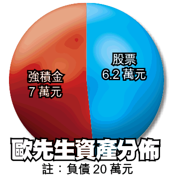 歐生除強積金約7萬元外,早年亦有月供滙豐(005)股票,惟現時已停供,並考慮應否沽出還債。