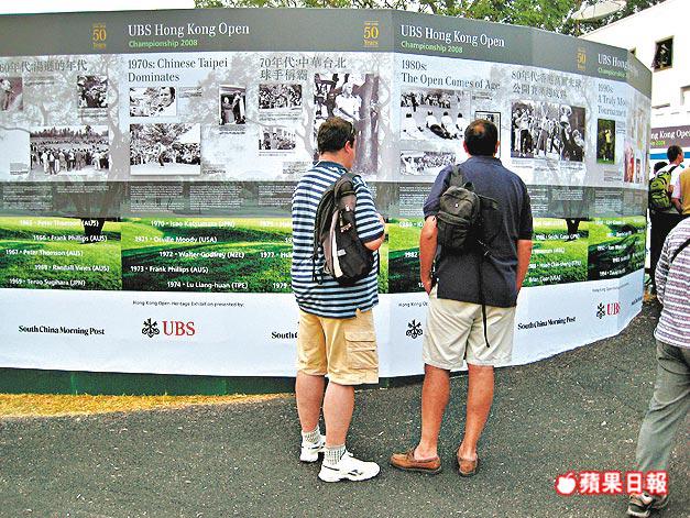 今年適逢香港高爾夫球公開賽踏入50周年,賽會免費招待50歲長者觀戰之餘,場內亦設有過去50年的冠軍圖片展(圖),讓入場球迷可以回顧過去歷屆的冠軍及頒獎嘉賓。當中好幾位球手如蘭格、蒙哥馬利及占文尼斯仍有參賽,但認真睇展覽的球迷則少之又少。