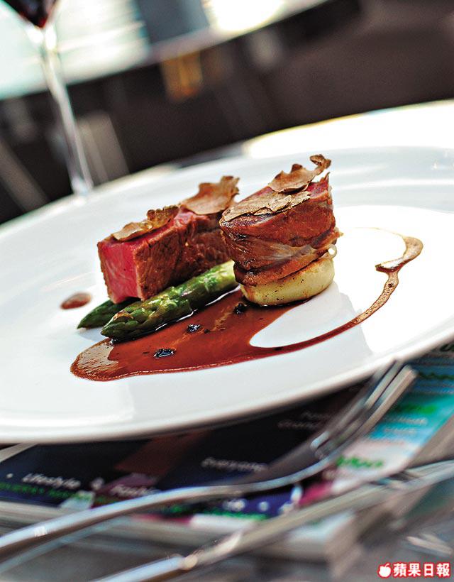 是個有心思的主菜,一邊以較有肉味的西冷配白松露及蘆笋,牛肉味特別香,清淡的蘆笋吸收了牛味,甜嫩而鮮;另一邊的牛柳,包火腿去煎,腍滑中有咬勁,一碟菜有兩種質感。