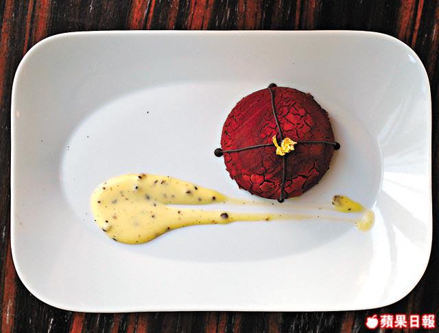 白朱古力綠茶拱球包朱古力脆面,外脆內滑,忌廉汁加白松露,多了一份自然氣息,吃一口,充滿複雜的味覺。