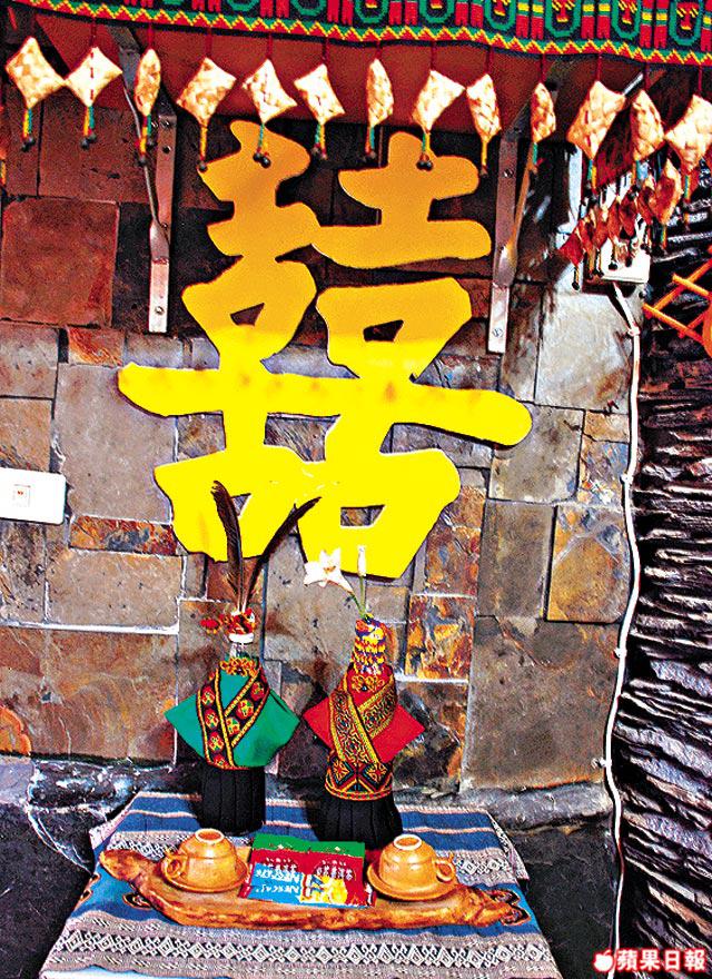 婚禮過後,自是全世界都一樣的儀式:洞房!春宵一刻值千金,新人自然住在附近民宿。我有幸參觀了其中一對新人的民宿新房──夢想之家。由魯凱族特有建材「石板」堆砌而成的石板屋,冰凉的石牆上,貼上「囍」字!原來新人們早於婚禮前入住民宿,而民宿主人會配合魯凱族婚禮,為新人置服裝、佈置花轎、新房,就像新人們在霧台的父母,照顧周到!