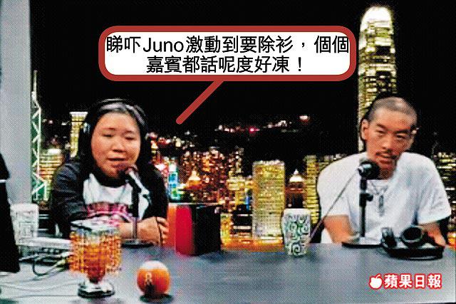陳海琪其後打圓場說:「做藝人真係好大壓力,要面對唔同抨擊,Juno你道行高,𠵱家可以靜如止水。」Juno卻笑着回答:「我𠵱家都唔係好靜,嗰位哥哥都係一個好敢作敢為、敢愛敢恨嘅人,我哋一齊努力。」Juno一邊說一邊緊握拳頭。接着陳海琪便播出Juno新歌,數分鐘後發現Juno已脫下大冷衫。陳海琪繼而轉述聽眾的留言,她說:「大家打電話入嚟斯文啲,唔好嚇走我啲嘉賓,你睇吓Juno激動到要除衫,個個嘉賓都話呢度好凍。」Juno有點尷尬地回應:「可能啲燈有啲熱。」