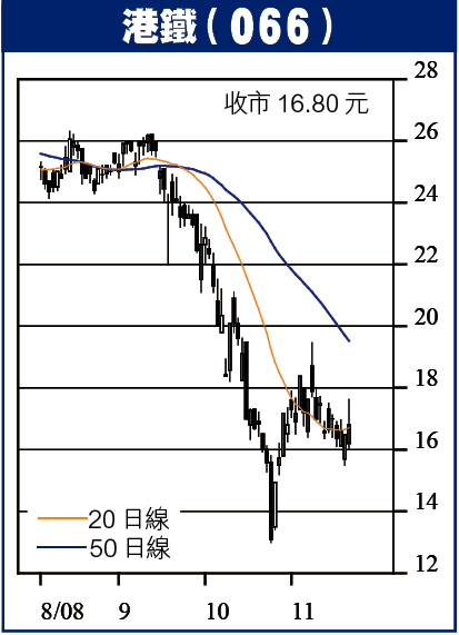 港鐵上星期五收16.80元,處橫行階段,短線有機上試18.70至19.50元,中線看23至25元,可作中線持有,止蝕位14元。香港建設上短線阻力41至43仙不易突破,有機跌穿32.5仙續向下尋底,沽出止蝕。中行短線上望2.40元,破位看2.60元,以1.97元作止蝕位持有。威靈乏大幅炒上條件,宜考慮沽出換馬。