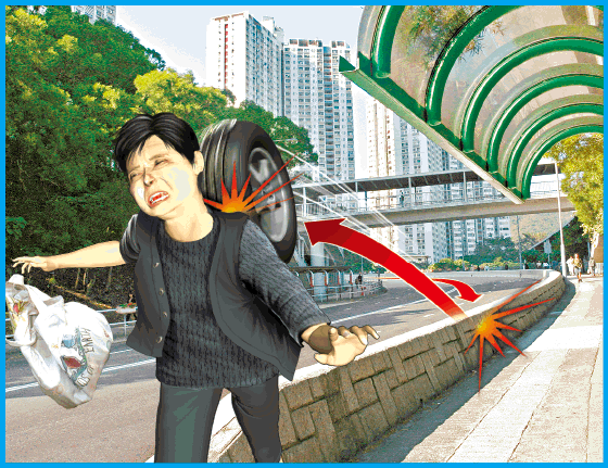 撞石壆彈起擊中婆婆