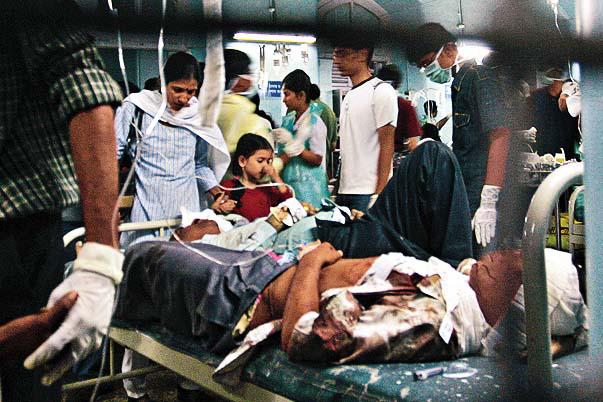 印度金融之都孟買,前晚(周三)變了群魔亂舞的「恐怖之城」。恐怖分子分成多隊連環襲擊孟買12個地點,在火車站、餐廳、醫院、戲院和警局大開殺戒,更在兩家五星級酒店屠殺遊客、挾持人質。這次「印度版911」至少造成125死315傷,兩名港人僥倖逃過大難。至本港凌晨1時,恐怖分子仍在一間酒店挾持人質逾100人。