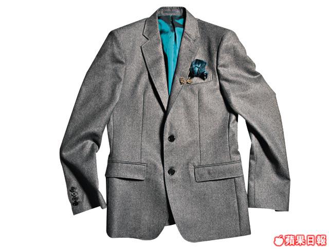「呢件應該係我第一件敢着上身嘅西裝褸,Cutting方面相當好。」(小記就超鍾意心口上面嘅藍色花形Brooch。)