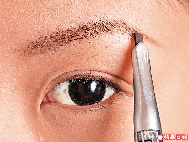 若將Model眉頭眉尾畫在同一高度,看起來便會似下垂,所以眉尾要改為畫得比眉頭高過1/2才有立體感。