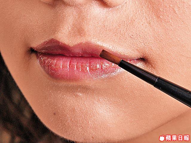 唇形較薄,看起來會欠缺立體感,可先以唇色接近的唇線筆沿唇山位加闊,再塗上珠光唇膏令感覺豐滿,然後在唇中央塗上唇彩,感覺更圓潤性感。